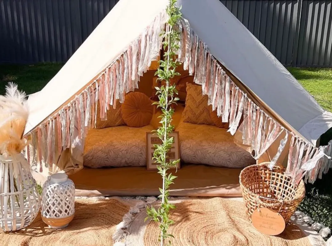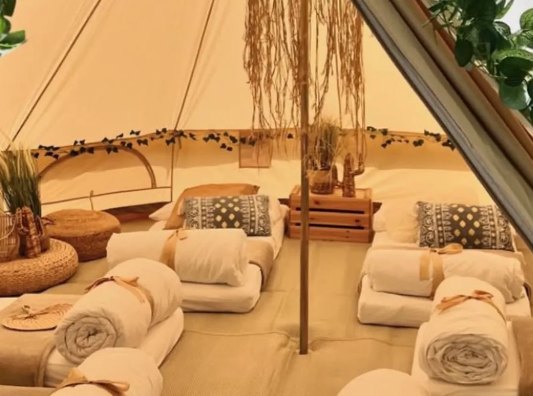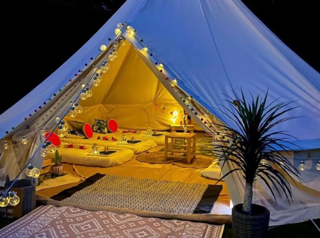 Our bell tents are ideal for smaller gatherings or adding something special to a larger event. Fully enclosed and weatherproof, they’re perfect for Ireland’s unpredictable climate while still feeling warm, welcoming, and relaxed.